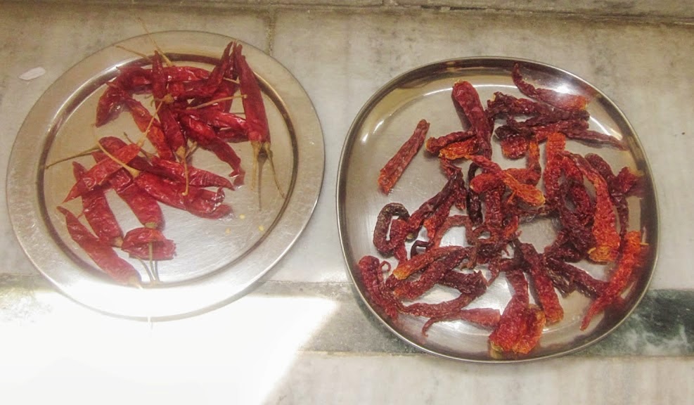 - Keep both types of mirchi / chillies under the sun for 1 hour.You should be able to break the chillies that's the right consistency